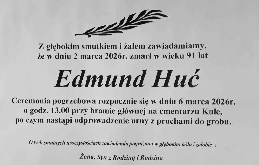 Pogrzeb Edmunda Hucia odbędzie się w piątek o godz. 13 na cm. Kule.