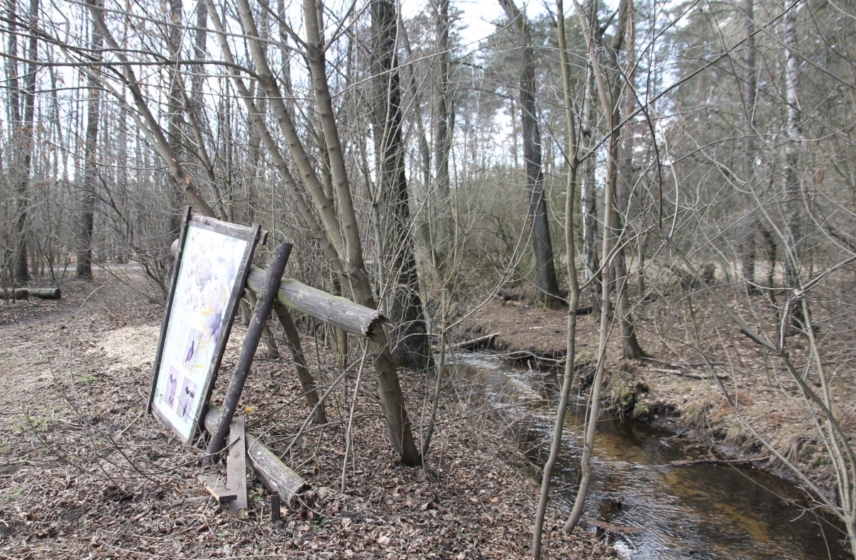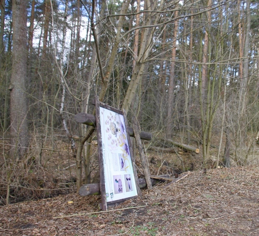 Tak swoje zdjęcia podpisał p. Andrzej, który w pierwszy dzień wiosny wybrał się na spacer nad staw. Jak się okazuje tablica ta leży przynajmniej od jesieni 2025 roku.