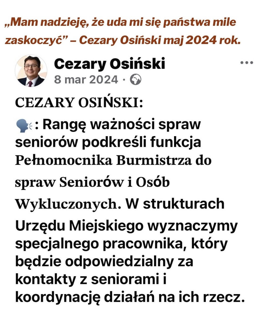 Czy komunikat urzędu rzeczywiście uspokaja seniorów? Mam wrażenie, że gmina nadal nie ma gotowego, realnego rozwiązania, które zapewni seniorom ciągłość wsparcia po zakończeniu obecnego projektu. Zamiast konkretów słyszymy: czekamy na konkurs, złożymy wniosek, powołamy jednostkę, zorganizujemy wszystko formalnie. Czy to jest plan zapewniający ciągłość opieki? Seniorzy potrzebują pomocy codziennie, nie po konkursie, nie po remoncie, nie po kolejnych decyzjach urzędowych.